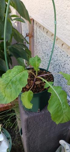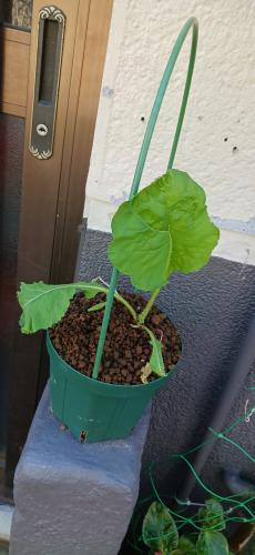 久々のもものすけ。カップが12cmで 葉っぱが横に広がるので狭いネットに当たるから葉っぱが縮むので かわいそうなのでネットはずしたけど 虫が来るよね~(;ω;) 2つ並べて大きめネット作ろうかしら