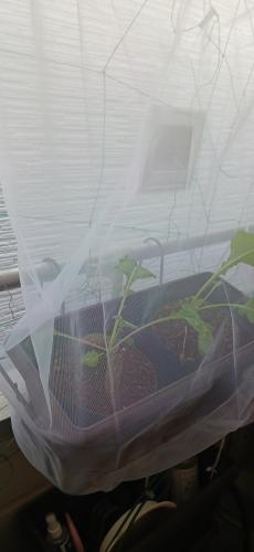 これはなかなか簡易ながらも…しっかり覆えているっ! ローコストハイリターンなやつですね。 涼しくなってきたけど、虫さんはまだまだ元気ですからね…ネット必須ですね。