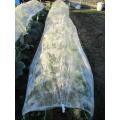 霜が降りるようになったので白菜を藁で縛って不織布も掛けました。