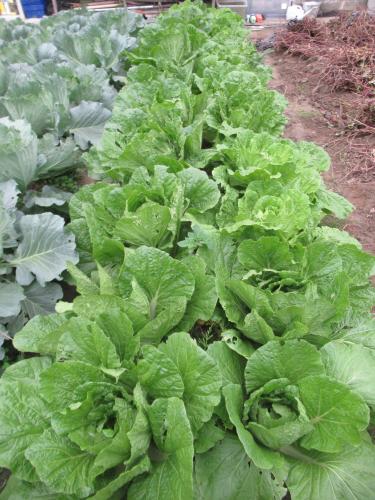 白菜がだいぶ巻いてきました。 今のところ順調です。
