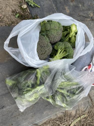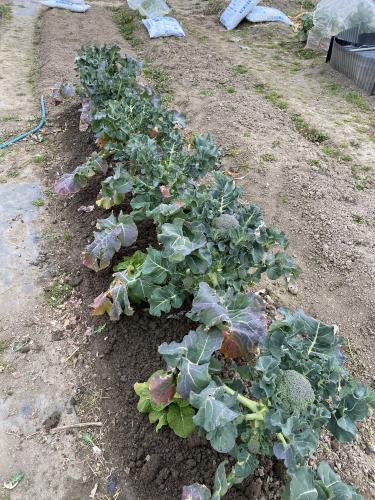 頂花蕾が12cmサイズに育ったので4個収穫。 側花蕾も4cmサイズに育ったのものを30個収穫しました。 息子と娘ファミリーに半量づつ提供 (^。^); マルチを剥がして化成888を散布・中耕して土寄せしました。 まだまだ4月下旬まで栽培を続けます。