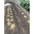 ポットに播種して畑に設置の遮光トンネルで発芽待機です。