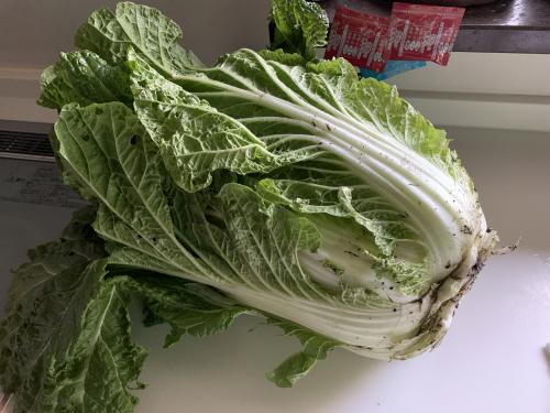 今朝、収穫した白菜は重量が4.5kgありました。上出来です。