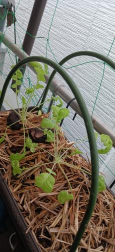 肥料の入った土を一回使うためにF1の大根植えたけど、追肥してないし日当たり悪いのでひょろひょろ~(≧ω≦。)