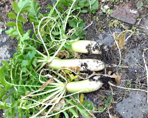 8月の下旬に種まいた大根は いくら待っても大きくならない。 待てば待つほど繊維が強くなる。 わかった 年内に抜いたほうがいいんだな 今年の夏はやっぱり8月末に種まいて 細くても短くても12月には抜いちゃおう。 とはいえ 煮てしまうとなかなか柔らかくて美味しい大根でした。 おしまい