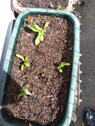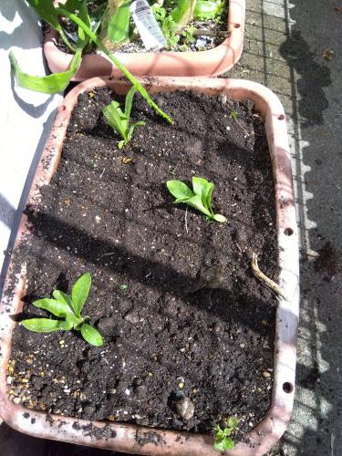 ベランダで育苗していましたキンセンカをプランターに植付しました。植付け時にオルトランを使用しました。