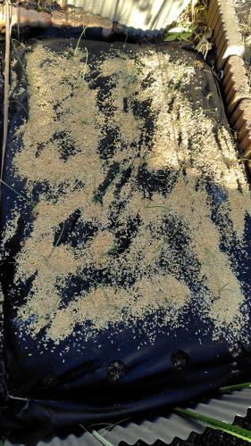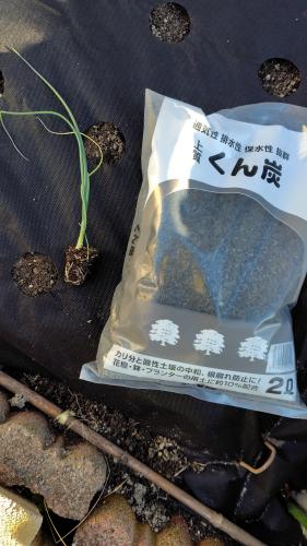 いつもより3週間遅れで玉ねぎの苗を植えた。 ニャハハの動画を見て、くん炭を買ってきた。 あげすぎも良くないらしい。 1つまみずつ根もとにくん炭をまいてから 普通のもみ殻もたっぷりまいた。