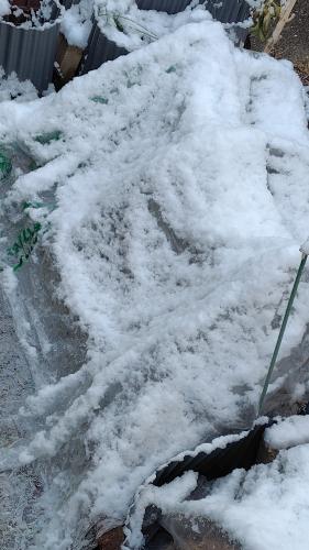 まさか雪がこんなに早くふるとは思ってなかった ポリシートは、はずれて半分ズレてる