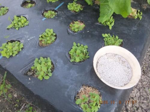 遅れ気味になりましたが・・ 2期目小カブの間引き 追肥 土寄せを行いました! 1期目収穫開始は1週間後になりそうです