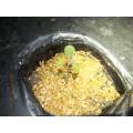 本葉がチョロットで始めの幼い苗を強制移植しています