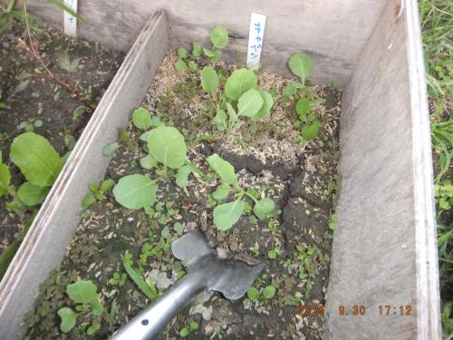 全く持って・・ミニキャベツの育苗がうまく行かず 再種まき分が少し採取できましたので畝に植え付けをしました! 再々種まき分の発芽状況はマズマズ 後日ポリポット移植する予定です