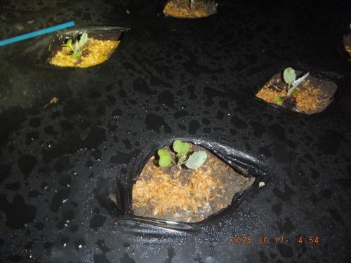 先日2葉の状態で強制的に植え付けしたミニキャベツ・・・ 今のところは全員無事である事を確認しました!