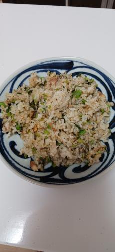 大根の葉とサバ缶とイワシのふりかけと塩と醤油でチャーハン。旨し(≧ω≦。) このふりかけ無添加で99円LAMUで いつも玄米や麦ご飯にかけて塩や醤油でご飯のお供。