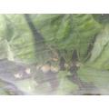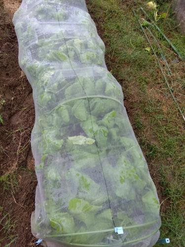 カブの肌と肌が触れ合っているところを間引きしました。 間引きしたものは、葉っぱを5cmほど残して取り除き、ハクサイを埋めたところに植付しました。 そのあと、こっこりんを散布しました。