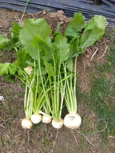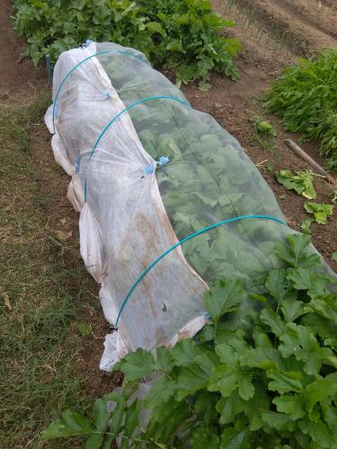 カブを間引き収穫しました。 これを取り除くと、周りが大きくなってウッハウハで間引き収穫。 これからも防虫ネットはかぶせたままですが、道路から大きなカブが植わっているのがまる見えなので、道路側に不織布を設置して見えなくしました。