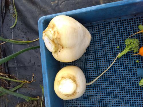 カブを収穫しました。 残りは僅かになってきました。 あとは、植替え組が頼りです。