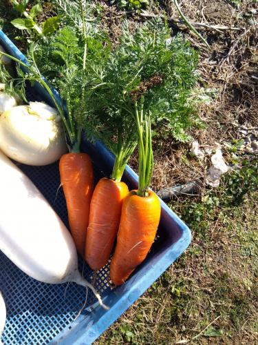 正月の筑前煮用でニンジンを収穫しました。 太くて長い、適正サイズでした。