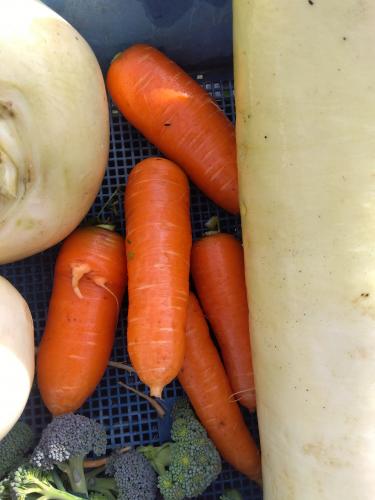 大きなニンジンは割れていました。 控えめなサイズを収穫。 ソロソロ全部収穫したほうが良さそうです。