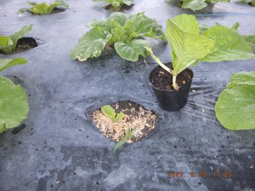 ミニハクサイ畝 明らか生育不良と判断した 2か所に予備苗植え替えを行いました!