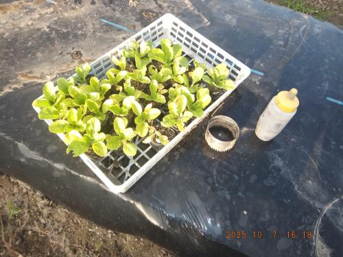 3期目ミニハクサイ苗の植え付けを行いました! 植え付けはこれで完了 総数85個になります
