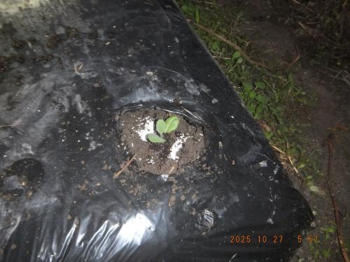 生育の悪かったロマネスコの余り苗をミニキャベツ畝の隅に植え付けしました!