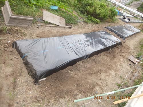 昨日 除草とマルチ剥しを済ませていた ブロッコリー畝の続き作業 夕方より作業開始 1時間ほどで完成させました