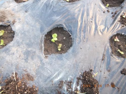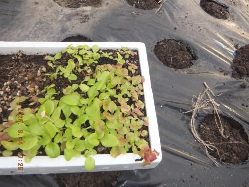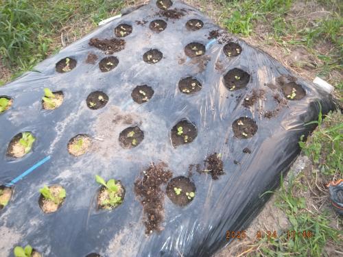 菜園でサニーレタスのバラマキ育苗をしていますが全く発芽せず 仕方なく・・別目的で育苗していた苗を植え付けしました!