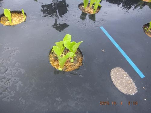 バラマキ育苗から直接畝に植え付けたロメインレタスがすべて根付き 順調な模様です!