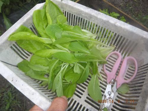 バラマキ育苗してポリポット移植しなかった サラダ菜とロメインレタスのベビーリーフを収穫しました→自宅用