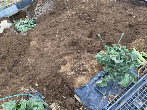 私の愛して止まない「スティックセニョール」達♡ チビッコの育苗チーム畝、全て収穫し、先に終了となりました。 今更ながら、スティックセニョール他、アレッタ畝に追肥です。