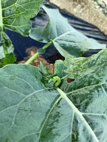ブロッコリーを観察していたら葉っぱに穴 葉っぱを観察したら青虫 犯人はコイツです テデトールして死刑