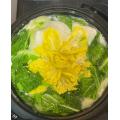 栽培に時間をかけ過ぎたのか、葉が硬めに感じたので、炒めものではなく白菜のトロトロなべにして食べました。