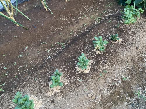 10月に入り、チラホラと地上へ顔を出し始めました。 しかし、インカ等々植えた畝、半分以上出て来ない。 タワラシリーズのおジャガたち、やはり優秀です! 後はこれからの気候次第。おジャガたち、頑張れ!!