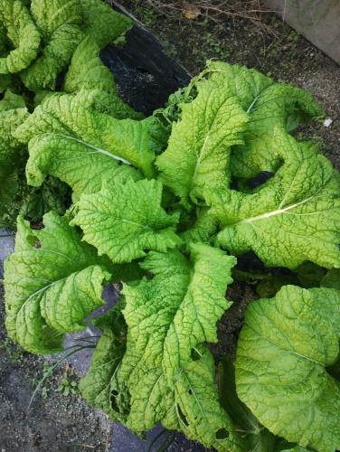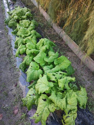 寒咲花菜の防虫ネットを撤去し、下葉かきをしました。