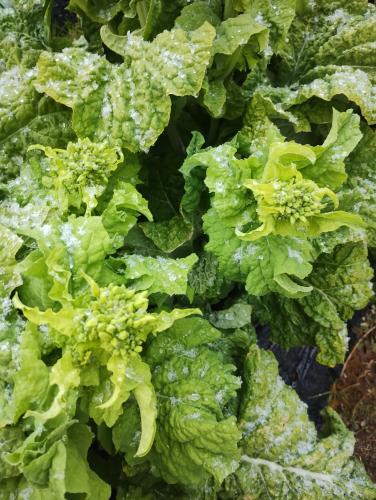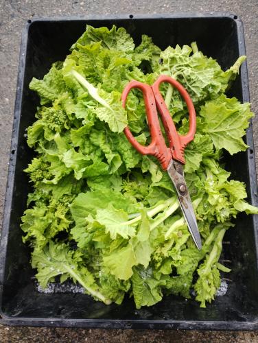 寒咲花菜(なばな)を収穫し、傷んだ葉を摘葉しました。