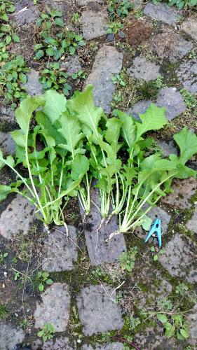 ブロッコリーを植えるために ごぼうを植えた土のうに大根の種をまいた。 直接ブロッコリーに使うよりも 間に小松菜かほうれん草を植えたほうがいいと書いてあったから。 そろそろ使いたいので 土のうの大根葉を抜いた。 今日は何を作ろうかな。 ぐらっと茹でて鰹節としょう油で食べようか。