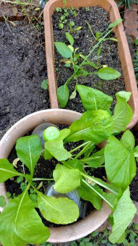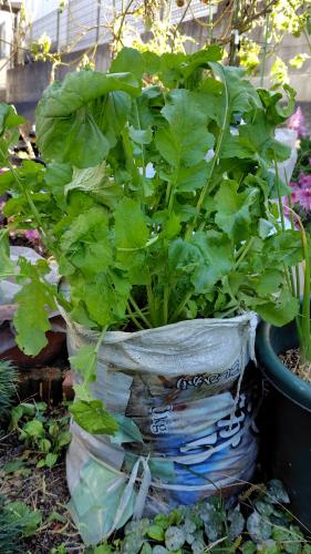 ブロッコリーの定植用の土を作るために かわいい大根小五郎を抜こうと思ったけど 惜しくなったので 4本だけ間引いて ちくわと炒めた。 全然育たない小松菜とほうれん草を抜いて、 その土に腐葉土とバーク堆肥と赤玉土を混ぜて 化成肥料もたくさん混ぜて とりあえず袋に詰めた。 定植は24日の予定。