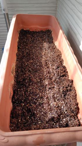 玉ねぎの苗を育てていたプランターに 『種まきの土』が大量に残っていて もったいないので ほうれん草の種をまいた。 2列に15粒ずつ。 庭ではほとんど発芽しなかったけど ベランダは日当たりもいいし霜も下りないし うまく育つんじゃないかな。
