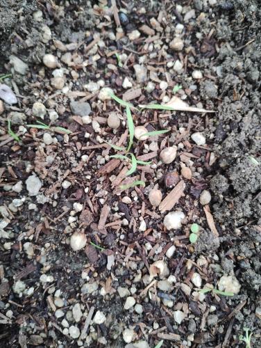 ディルが発芽しました。周囲を除草し、追い蒔きしました