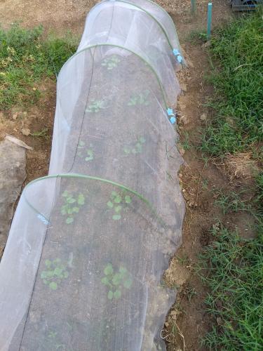 ダイコンにゼンターリとダインの混合液を防虫ネットの上からスプレーしました。