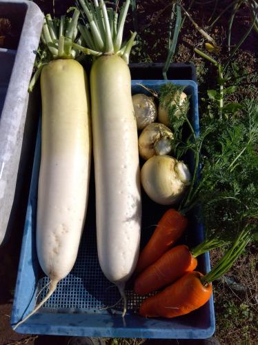 太すぎるダイコンを収穫。 だいたい10cm超えです。 このダイコンは干しダイコンにします。