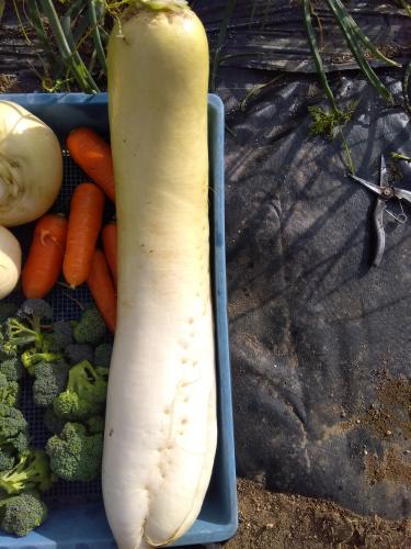 太すぎ、デカすぎ、重すぎダイコンを収穫しました。 まだ、同じサイズが3本あります。 干しダイコンにします。