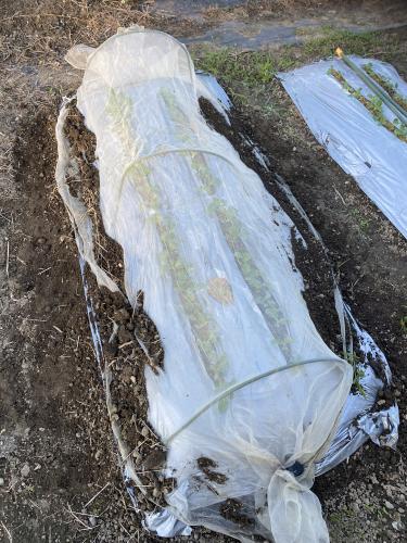 ネットトンネルしました。 前回はカメムシなどの害虫被害が酷かったので、 エルサン粉剤2を散布しました。