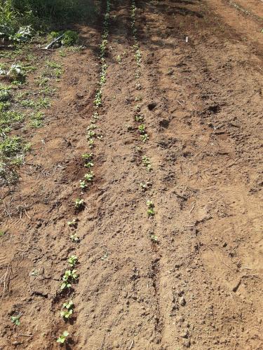 今年はぜひ大きなカブを収穫したい 昨年の種だけど、発芽率はよし。間引きする。