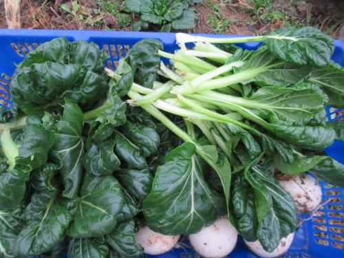タアサイをかきとり収穫しました。 横に広がり大きく育っています。