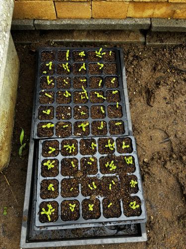 ポットに撒いた春菊の種が発芽しました。 しかし、畑に直播した方はなかなか発芽しません。 土が悪い?
