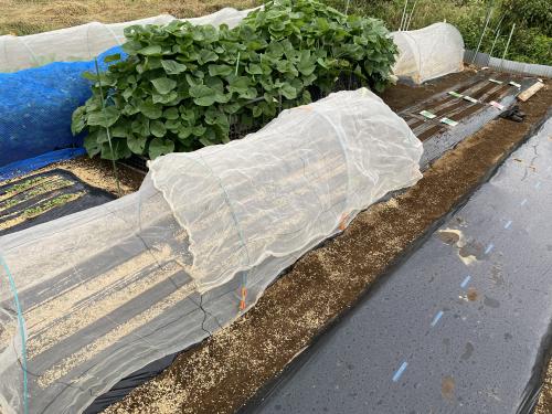 週間予報がやや外れ気味にて、毎日の最高気温が低くなっている。 こりゃノンビリしてられないと思い、慌てて空きスペースに色々播種。 新種「もものすけ」袋が畑に落ちていて、ヨレヨレになって濡れてた!Σ(゚д゚lll) 仕方ないので、残りの種を蒔いたけど、60㎝幅程で全て無くなってしまったw 「蕪」なんて必ず余る種だと思っていたけど、最近はよく使い切ってしまう。 近年(特に葉物)は品種に拘る事もなくなってきたので、そろそろ百均かな?w