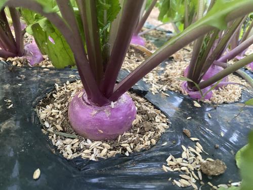 今年度、久しぶりに栽培の「もものすけ」です♪ 先発隊の方はイイ感じになってきたものの、里芋蔭のせいか、玉が小さめ。 後発隊の方もまた、サツマイモの陰になっていて、葉色が何だかイマイチ。 後発隊の「もものすけ」、防虫ネットを外して、間引きしました。
