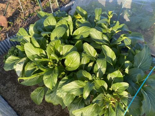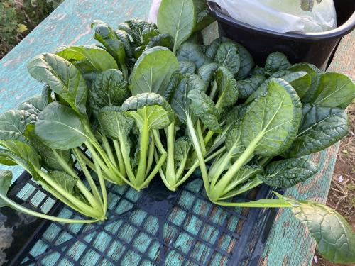 アスパラ菜・サラダスティック、終盤戦の収穫。 春菊やら縮み小松菜なども、ちょいちょい収穫中♪