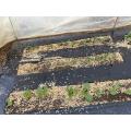 葉物系、追加蒔き。ビニールトンネルかけて、ゆっくり育てます。 手前より 縮み小松菜・小松菜 ホワイトミニ・葉大根 ホウレンソウ
